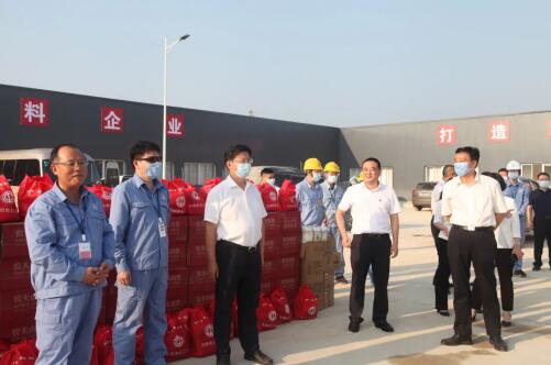 陈爱林、彭先政听取了项目施工负责人的情况介绍,为高温下的建设者送上防暑降温的物资和药品。