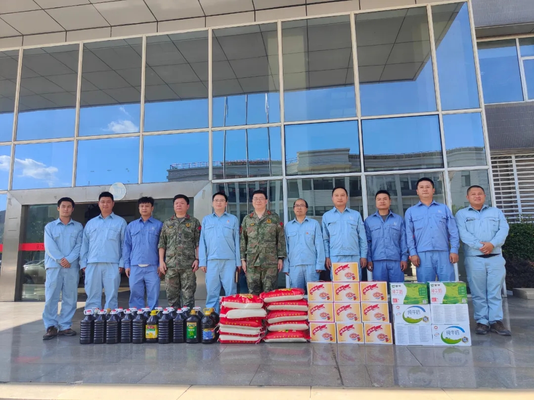 在中石化催化剂长岭分公司,慰问组向企业退役军人及团洲防汛基干民兵致以节日的祝福和敬意,并送去慰问品,对他们为国家和人民所做出的贡献表示衷心感谢,希望他们继续发挥模范带动作用,退伍不退志、退役不褪色,一如既往的支持园区各项工作,并叮嘱他们保重身体。